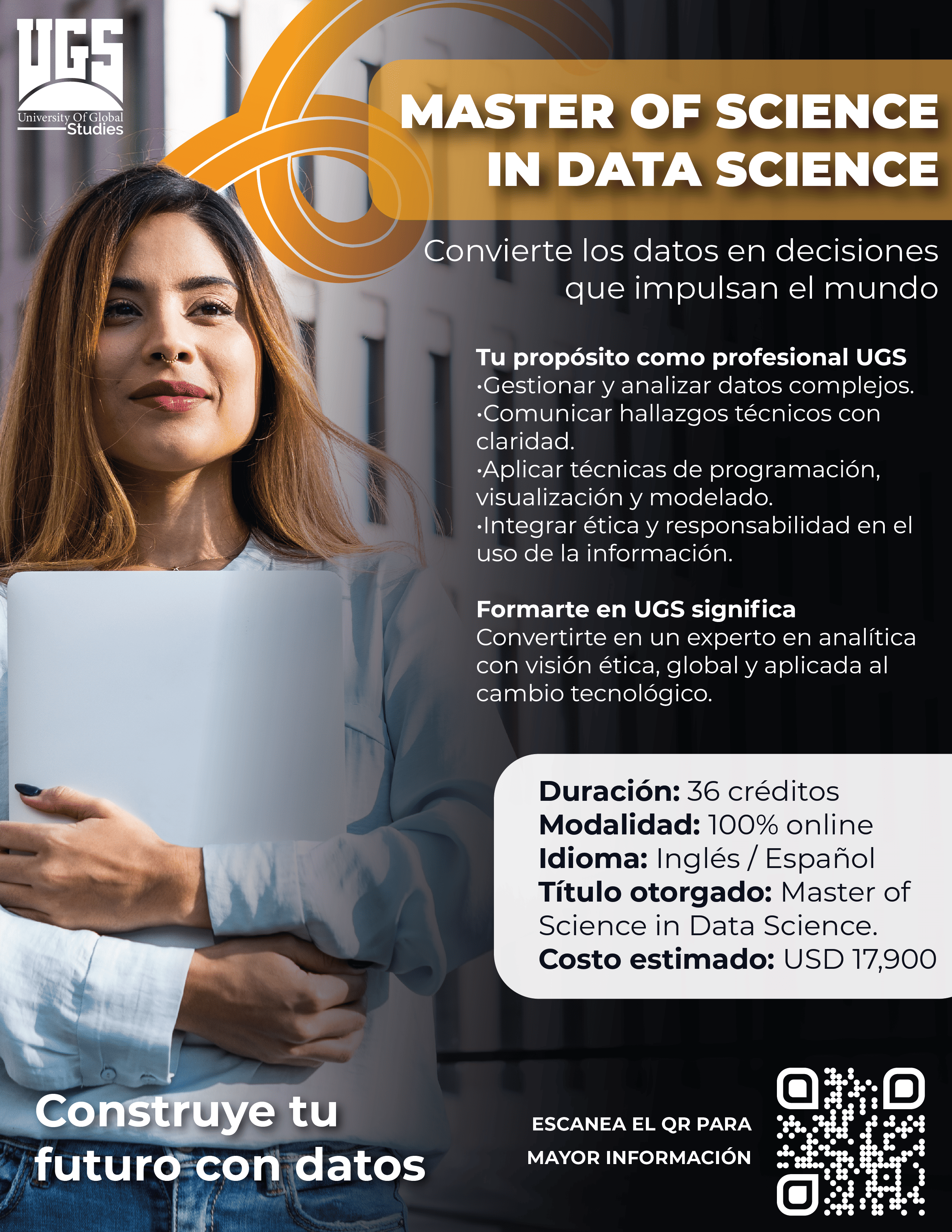 La Maestría en Ciencias de los Datos (MSDS) proporciona una formación integral en estadística aplicada, programación, análisis predictivo y big data. El programa forma expertos capaces de transformar información compleja en estrategias basadas en datos, aplicables a sectores como tecnología, salud, finanzas y marketing.